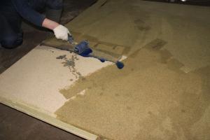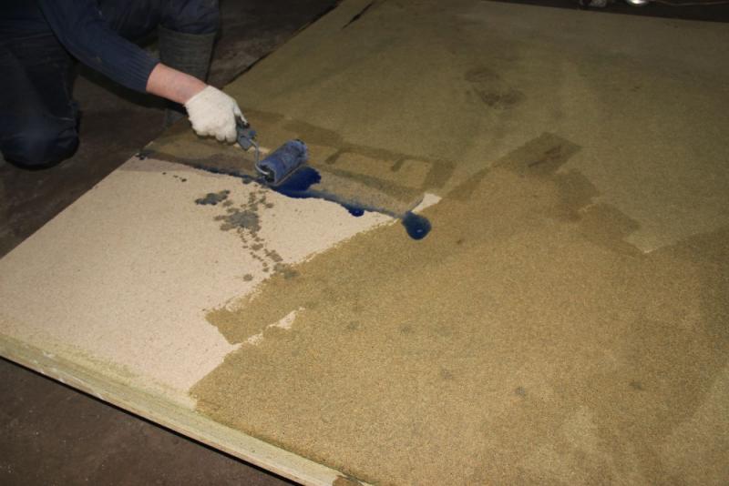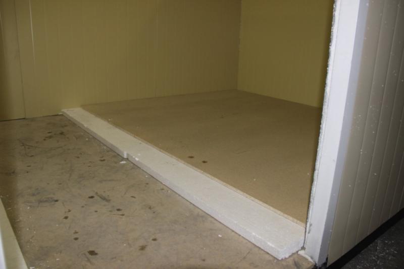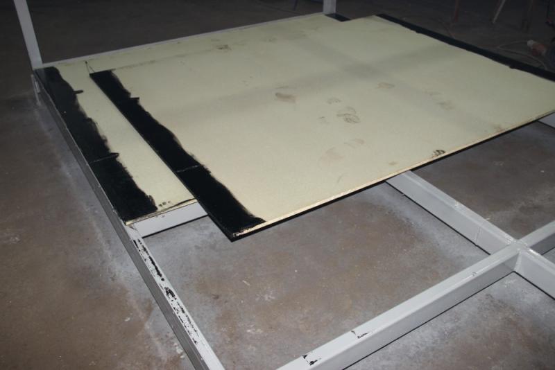 3. Пол также сделан по принципу наборного сэндвича (ДСП дополнительно обрабатывается антисептическим раствором , так же проходит обработка по периметру пола гидроизоляцией)
