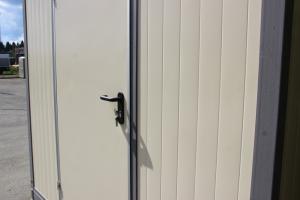 4. Дверь собственного производства: жесткая, теплая, с добротной нажимной ручкой и двойным контуром уплотнения.